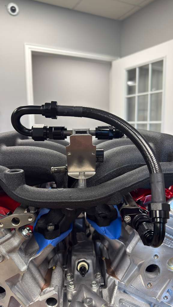 Kits began shipping with fuel rail adapters that featured an integrated 1/8" NPT port which can be used for monitoring fuel pressure if desired (fuel pressure kit not included). We supply a plug that is required to be installed if you are not using this port for monitoring fuel pressure. This plug requires the use of a thread sealer, please verify there are no leaks here before starting the engine)
