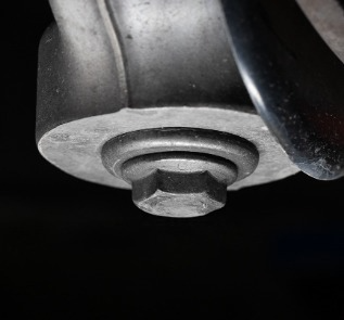 With the nut left in place on the ball joint, sand the threaded portion down to nearly flush with the nut as you can see below. Once complete, paint the now exposed portion of the ball joint to prevent rusting: